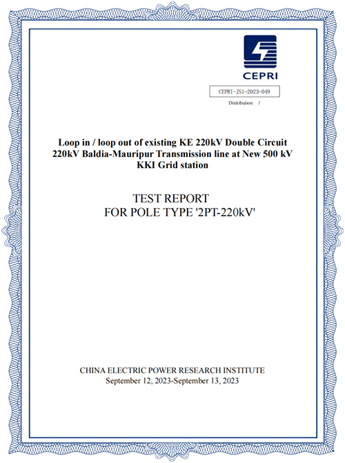 Rapport de test de charge sur poteau en acier 220 kV